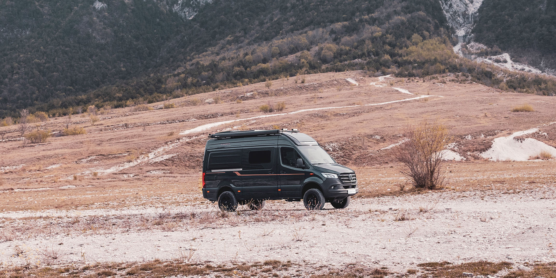 Premier fourgon aménagé Adria sur Mercedes-Benz offrant une transmission intégrale avec capacité 4x4. Conçu et construit pour les explorateurs, les aventuriers et les amateurs d’adrénaline, parce que les routes difficiles mènent toujours aux plus belles destinations.